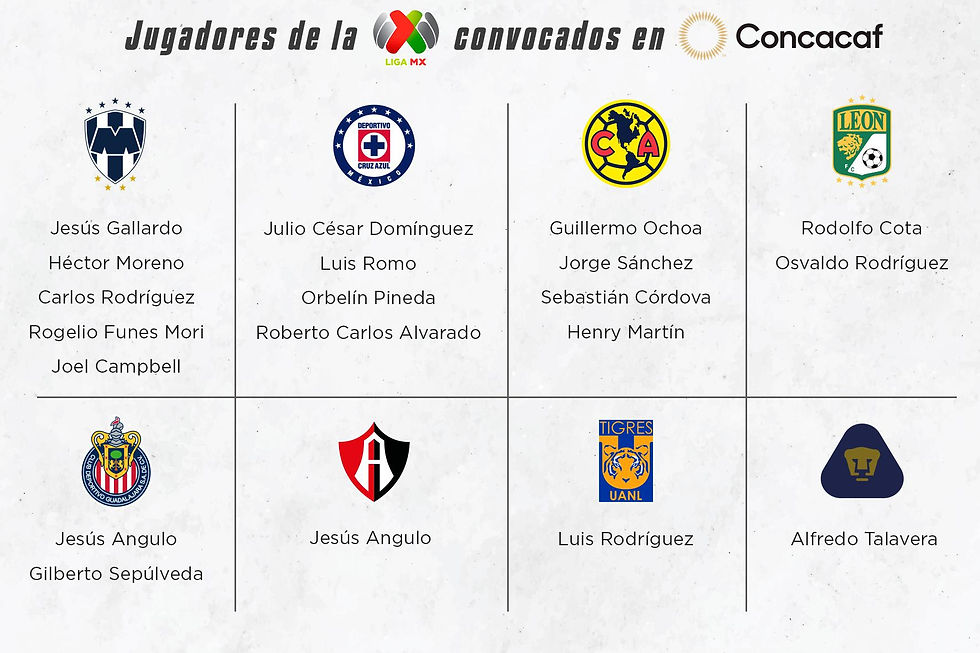 La Liga MX alimenta con 19 jugadores la lista del Director Técnico de México, Gerardo Martino. Siendo América, Cruz Azul y Monterrey los Clubes que más aportan con cuatro seleccionados, cada uno.