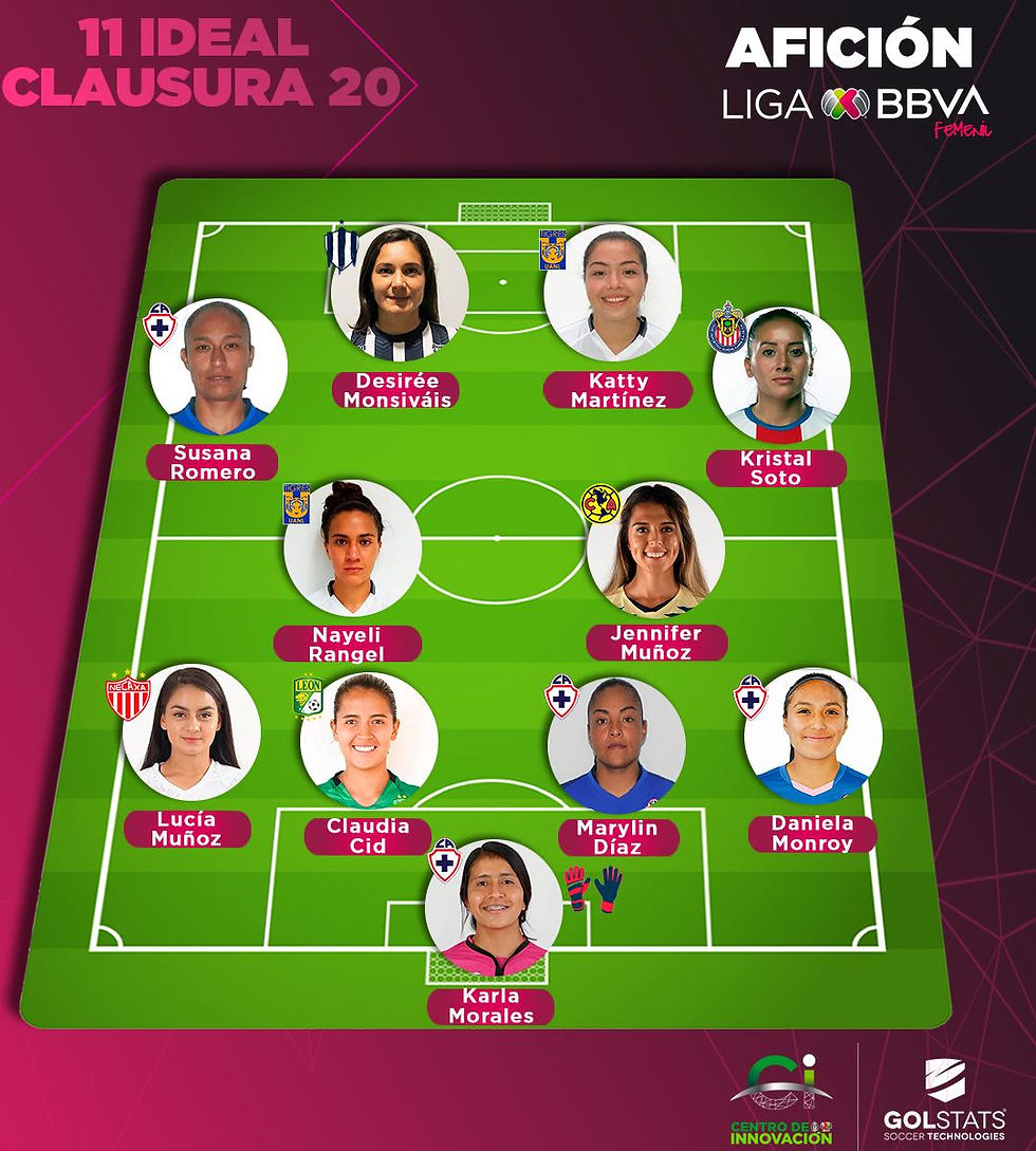 Luego de varios días de participación, La Liga MX Femenil ha completado su dinámica para conformar el 11 ideal del torneo Clausura 2020, con dos vertientes, las elegidas por el comité editorial y otro por la afición.