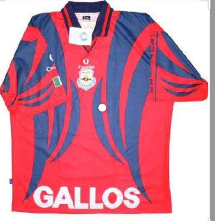 El segundo diseño del jersey de Gallos es más recordado que le anterior. Se trata de un uniforme a rayas rojas y blancas y short azul marino, equipamiento muy similar al de las Chivas.