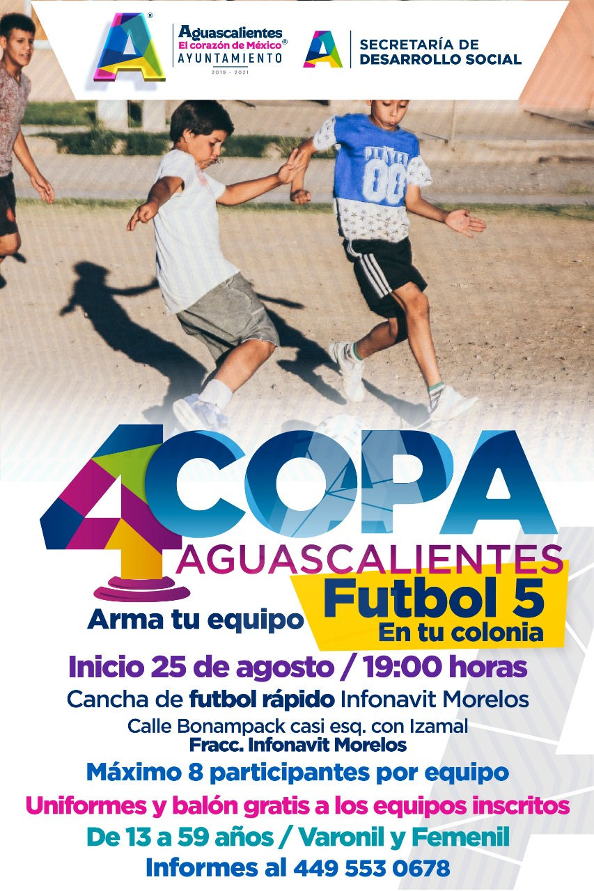 El torneo de fútbol 5 de la Copa Aguascalientes inicia este martes en punto de las 7 de la noche.